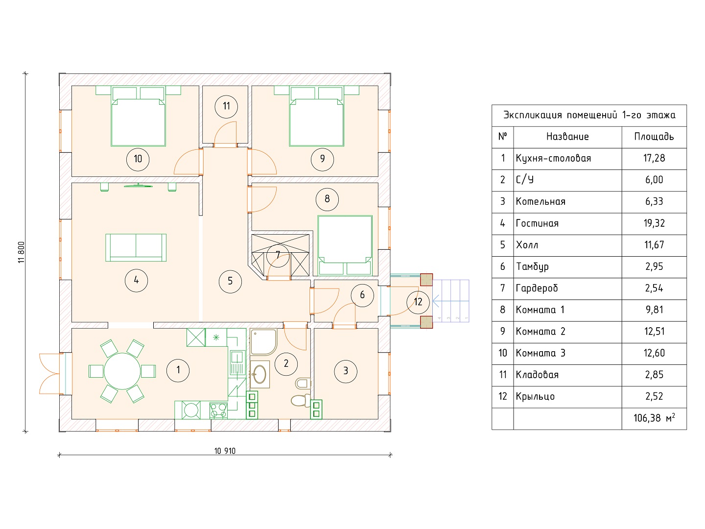 Проект одноэтажного дома 2.34 - 106,4 м2