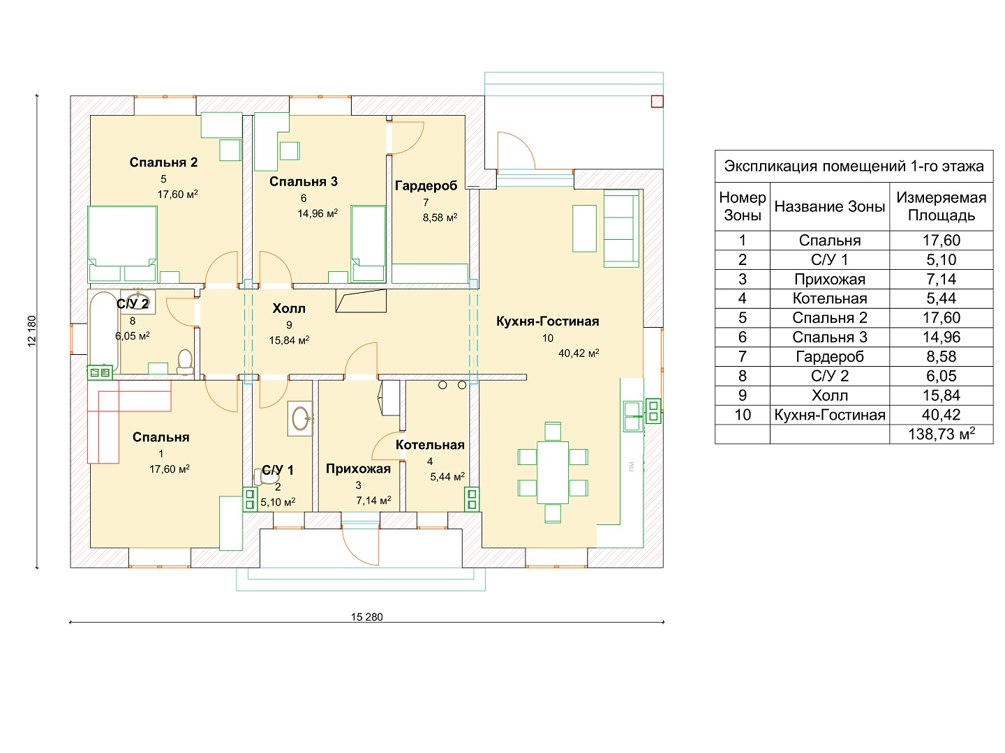 Проект одноэтажного дома 2.37 - 138,8 м2