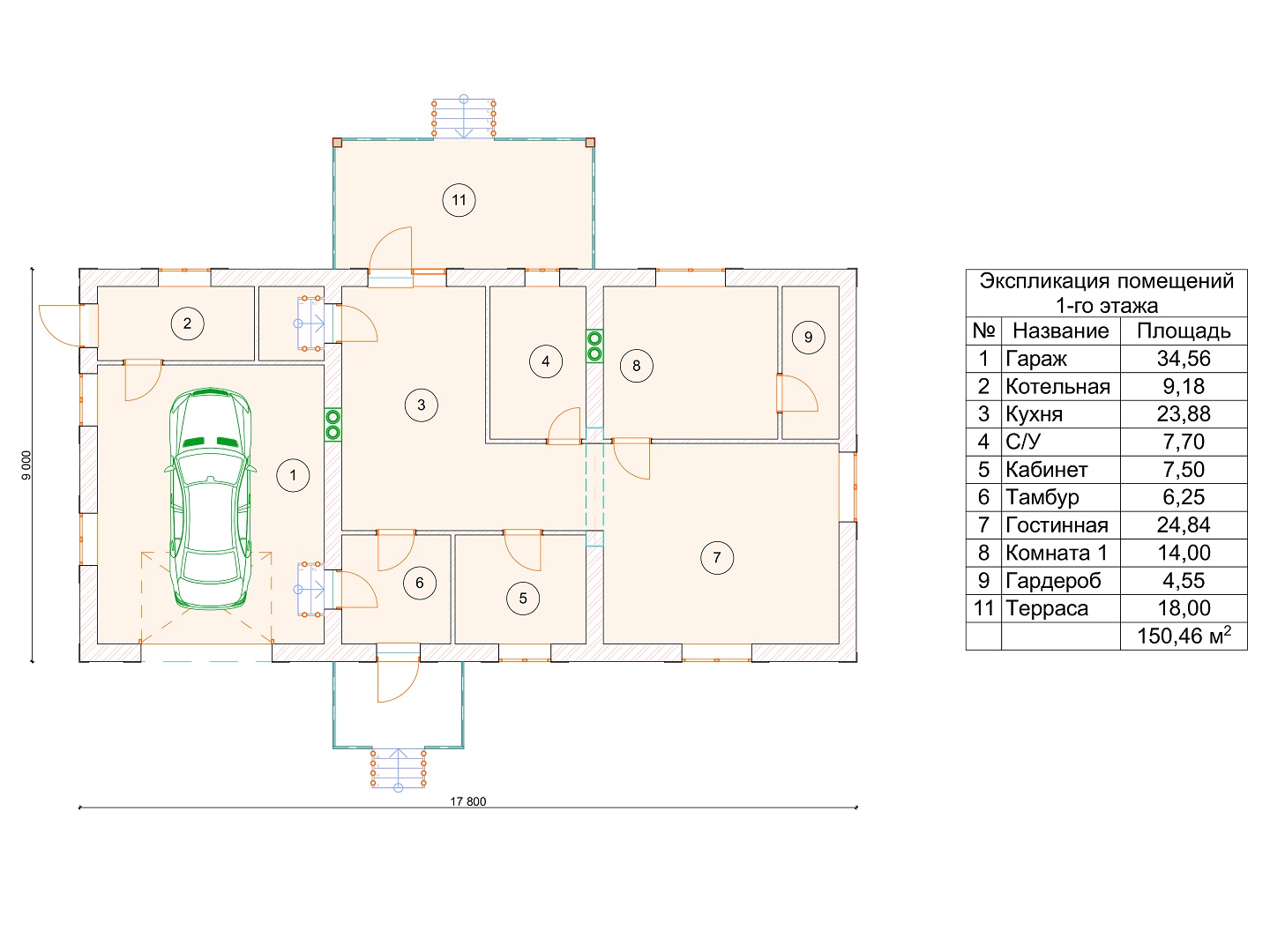 Проект одноэтажного дома 2.26 - 150,5 м2