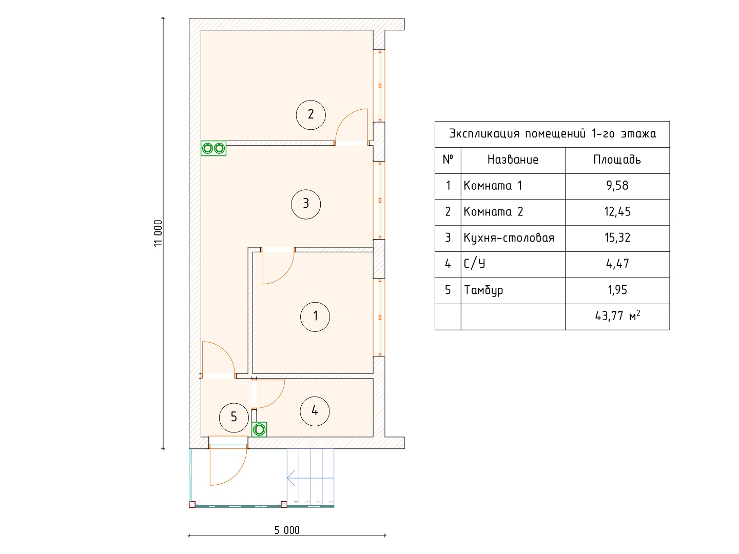 Проект одноэтажного дома 2.33 - 43,8 м2