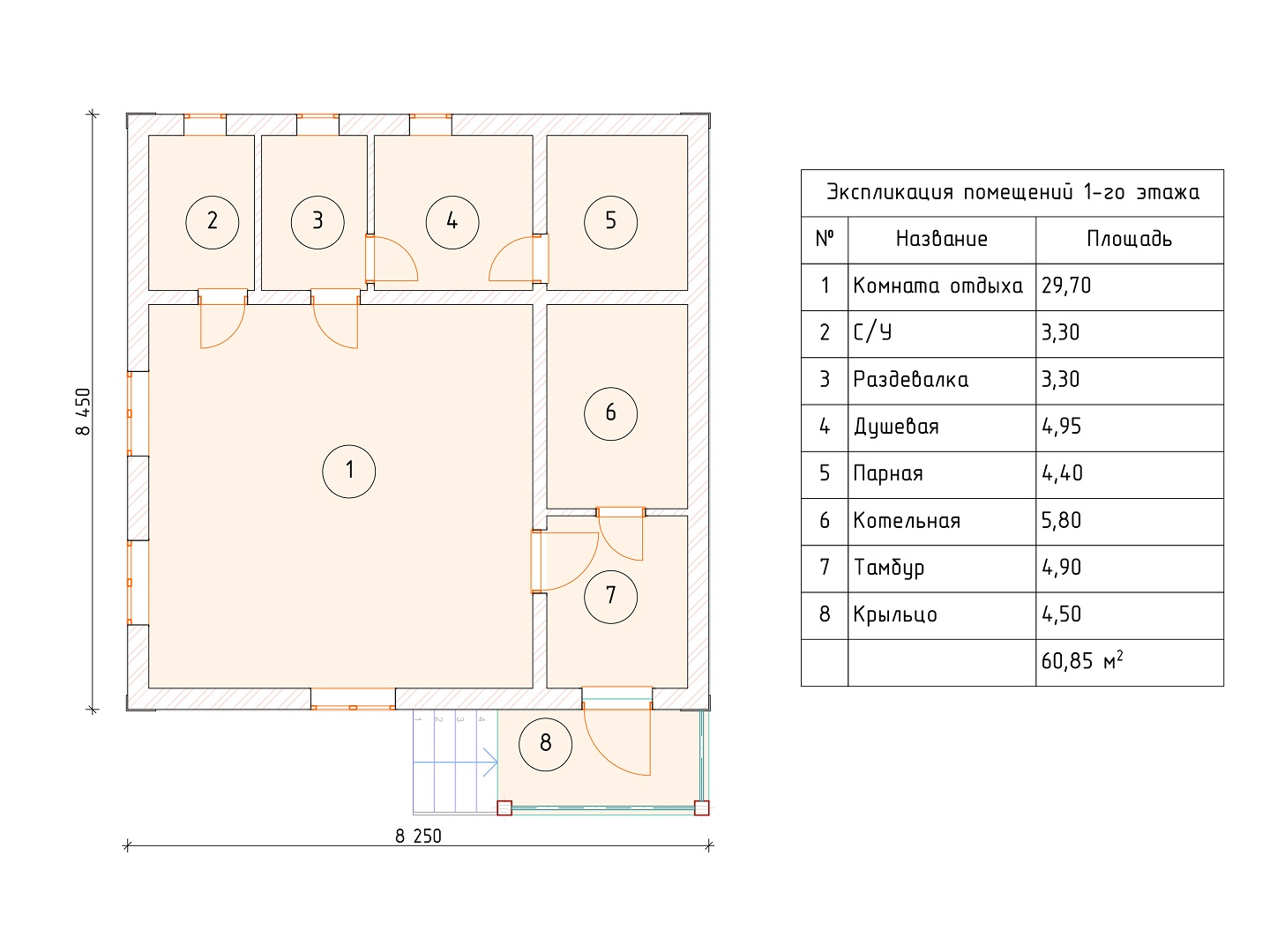 Проект одноэтажного дома 2.22 - 56,4 м2