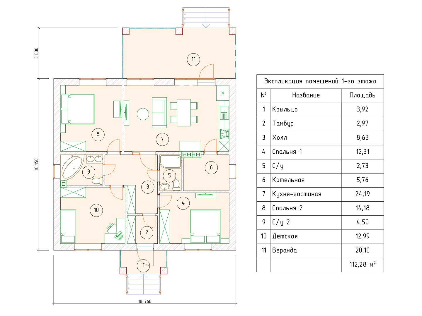 Проект одноэтажного дома 3.01 - 63,7 м2