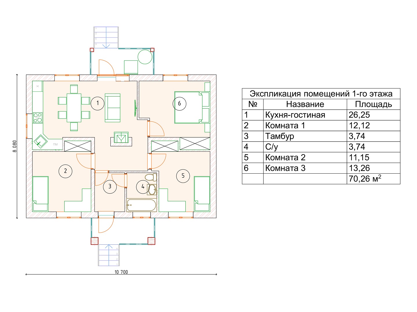 Проект одноэтажного дома 2.30 - 70,3 м2