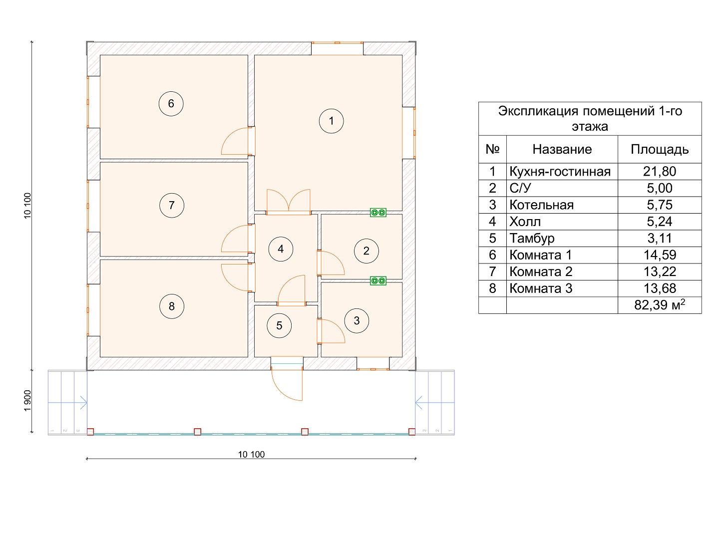 Проект одноэтажного дома 2.17 - 82,4 м2